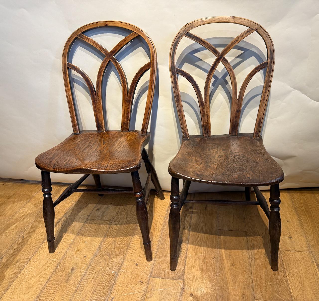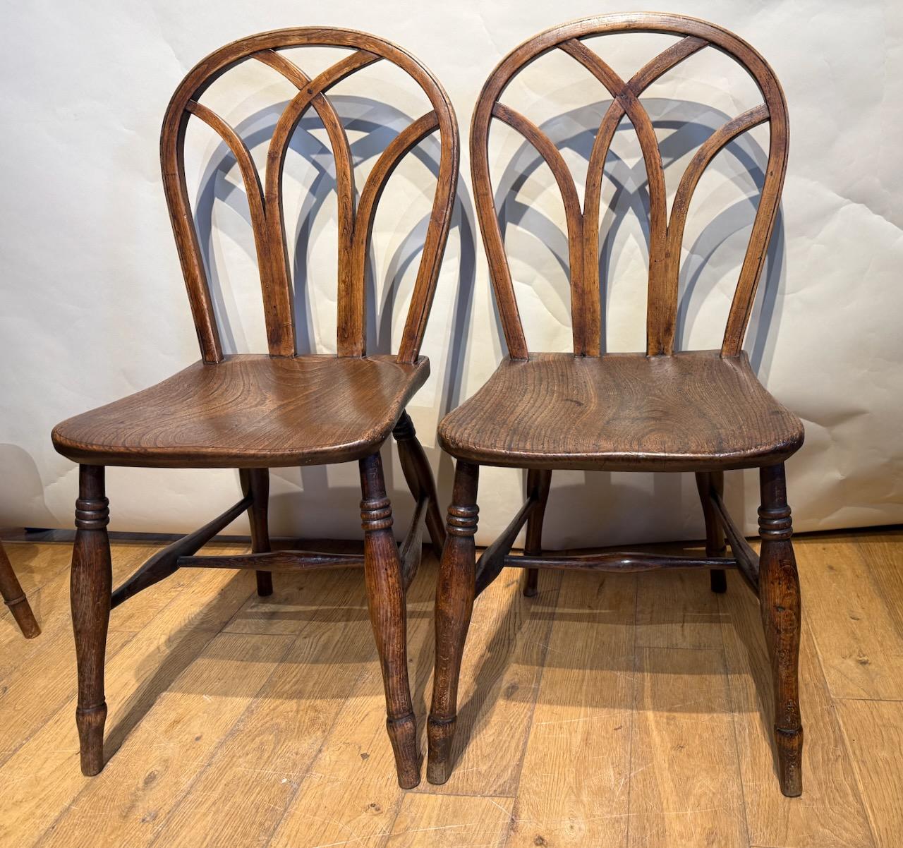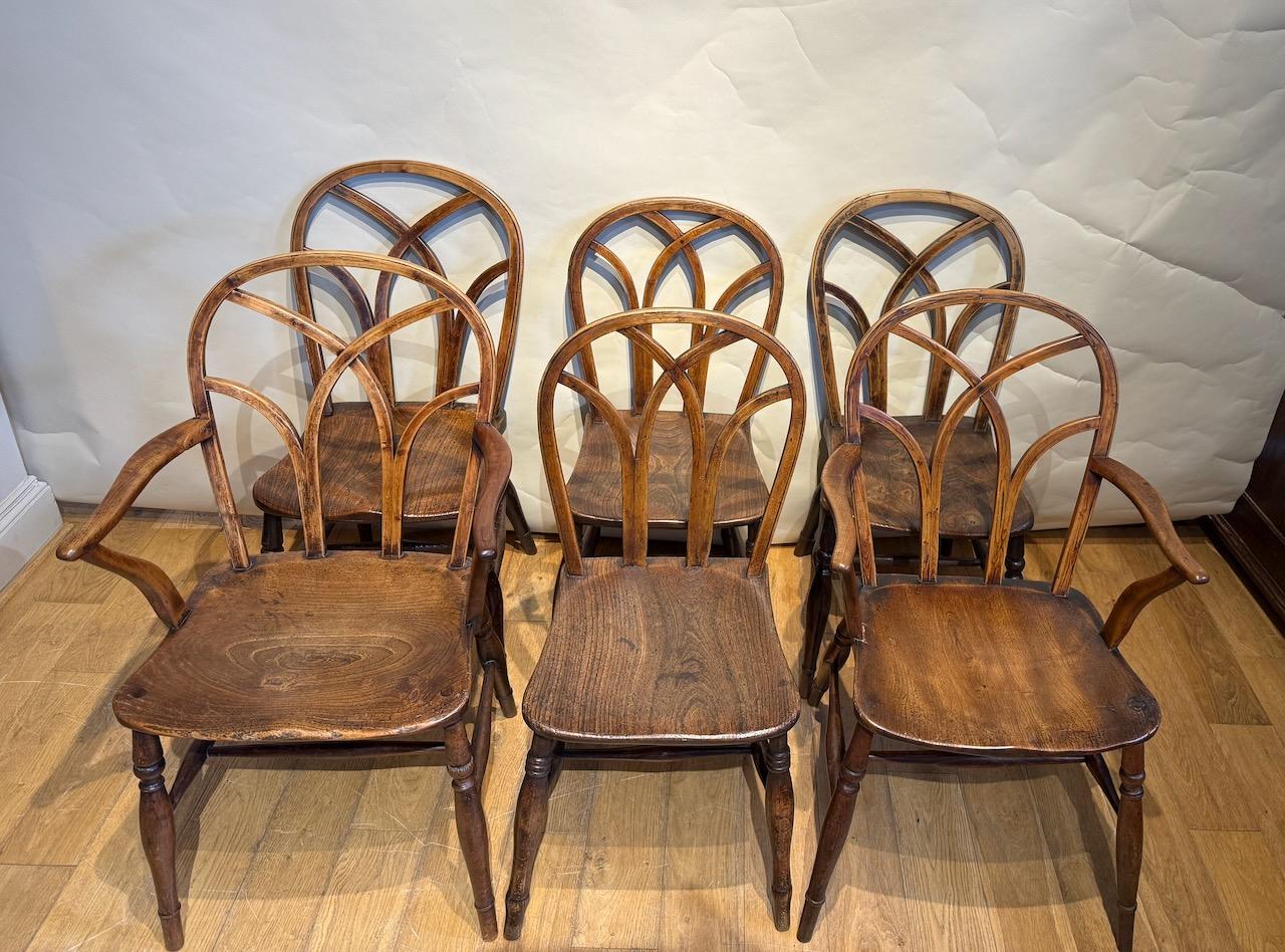 Harlequin Set of Gothic Lace Back Chairs, from the Thames Valley, two carvers and four single chairs, in Ash, Beech and Elm,